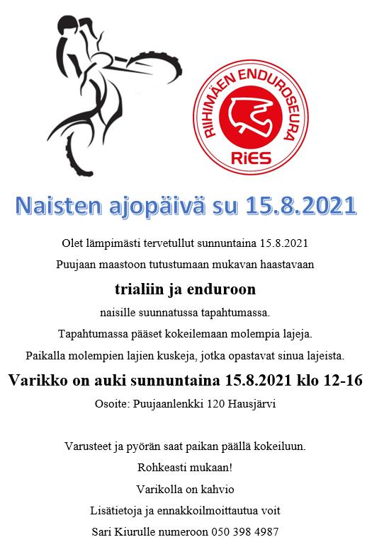 Ilmoittautuminen SU 25.7.2021 klo 18.00 mennessä.